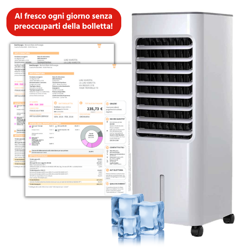 I ventilatori tradizionali, purtroppo, consumano tanto e fanno solo circolare aria calda e stagnante, offrendo poca soluzione. Per fortuna, abbiamo la soluzione perfetta per te: un raffrescatore d’aria con tripla classe A+++ a bassissimo consumo energetico (appena qualche centesimo al giorno) che garantisce una freschezza senza precedenti