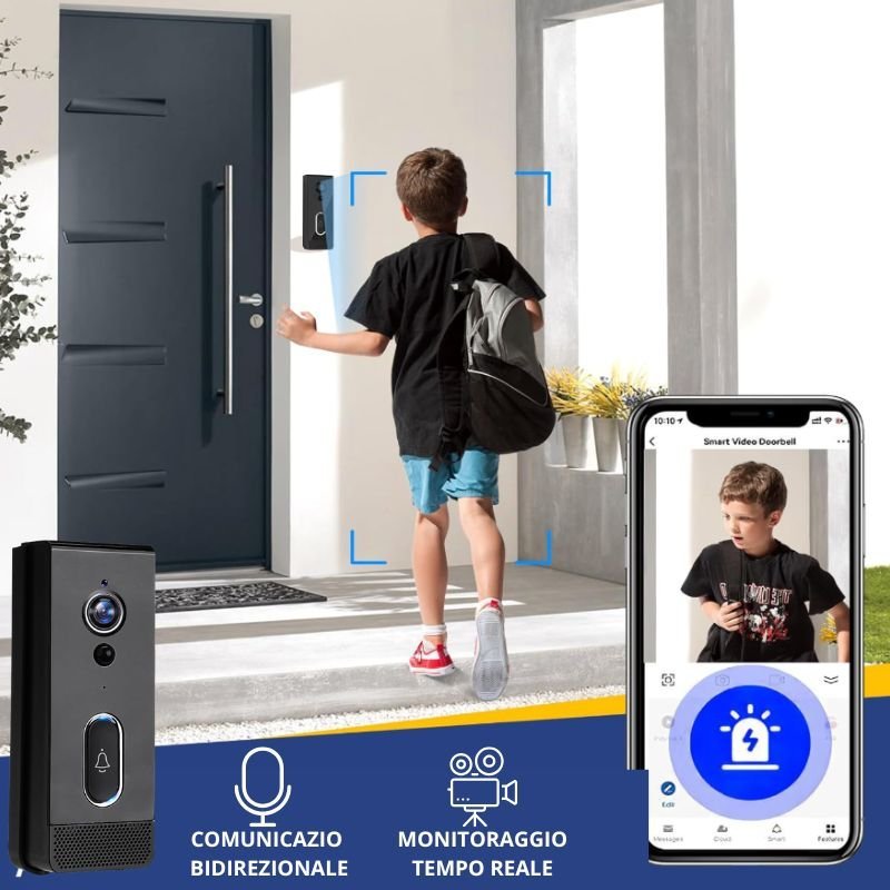 Rendi la tua casa più sicura e intelligente con il Videocitofono Smart, che offre sicurezza avanzata, comunicazione istantanea, apertura porta dal cellulare, monitoraggio in tempo reale e notifiche immediate, il tutto con un’installazione rapida e senza fori